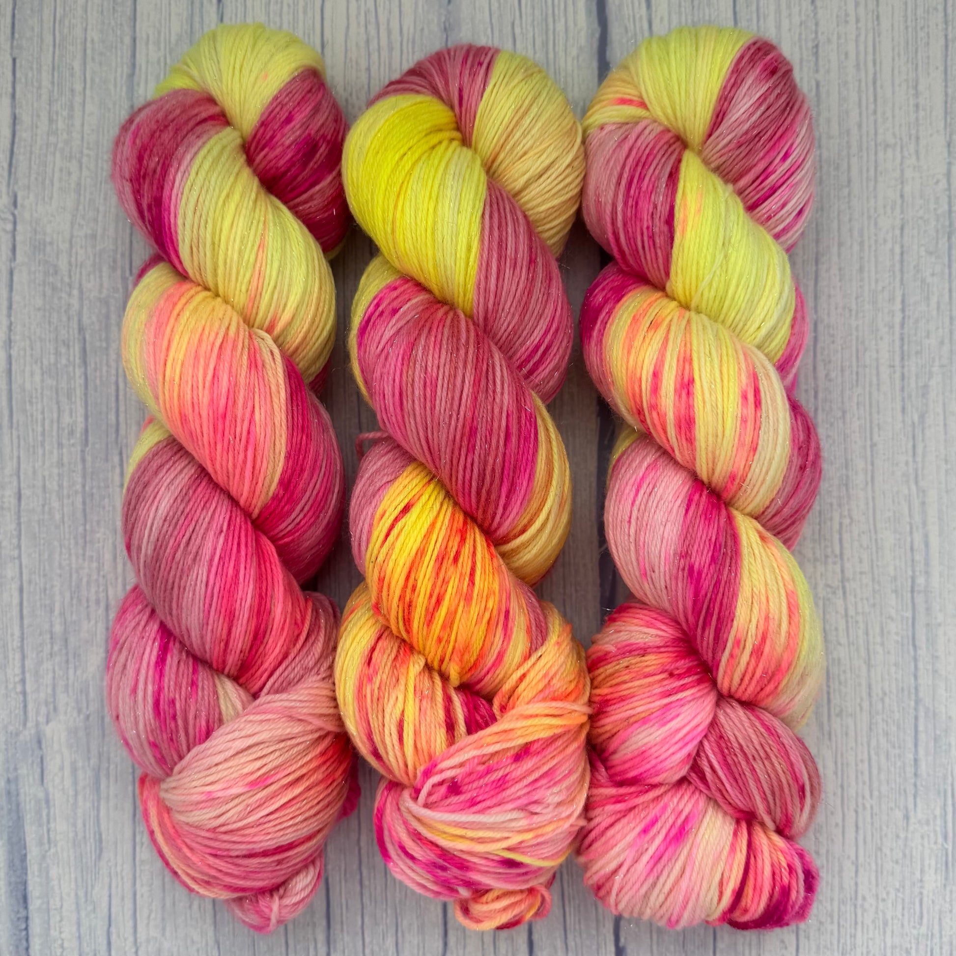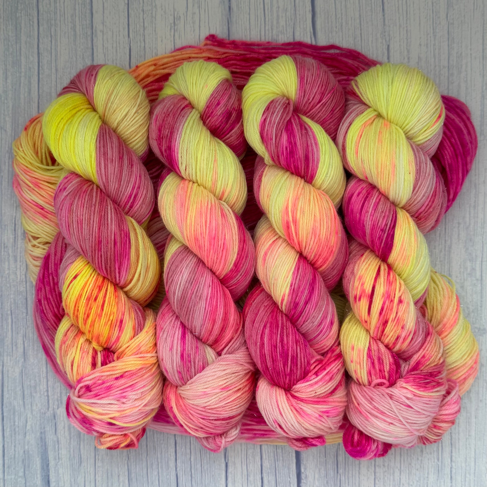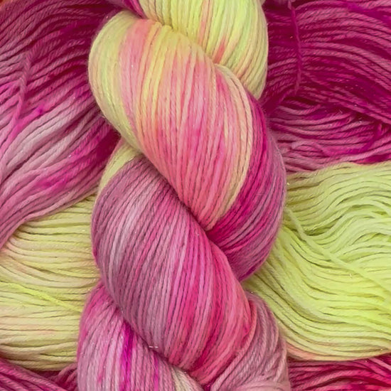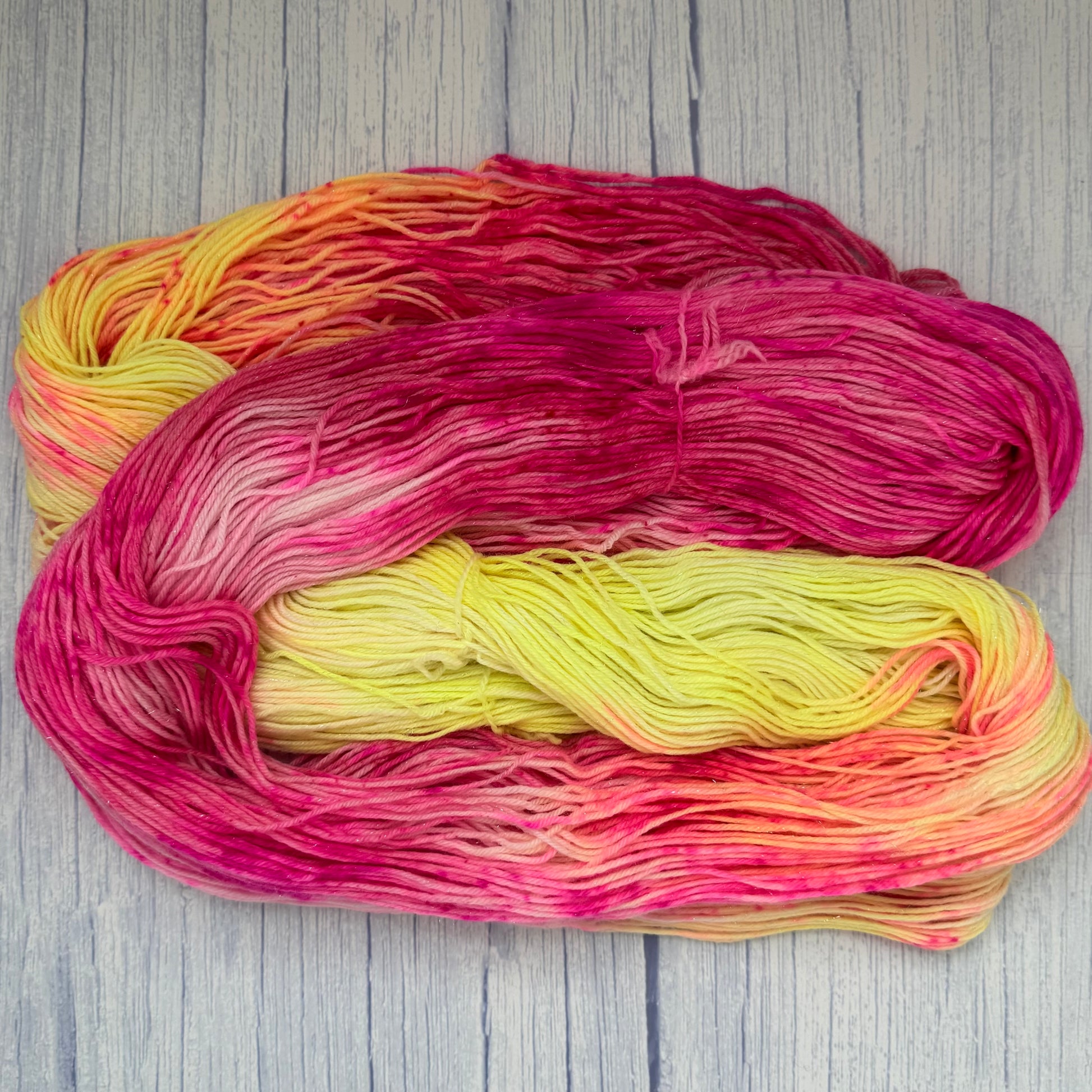 Introducing a taste of our Park Treats Collection, a most delightful swirl of golden pineapple and raspberry pink. Inspired by the irresistible tropical treat this colorway is a deliciously fun way to add a little paradise to your projects. Grab a skein before it melts away.