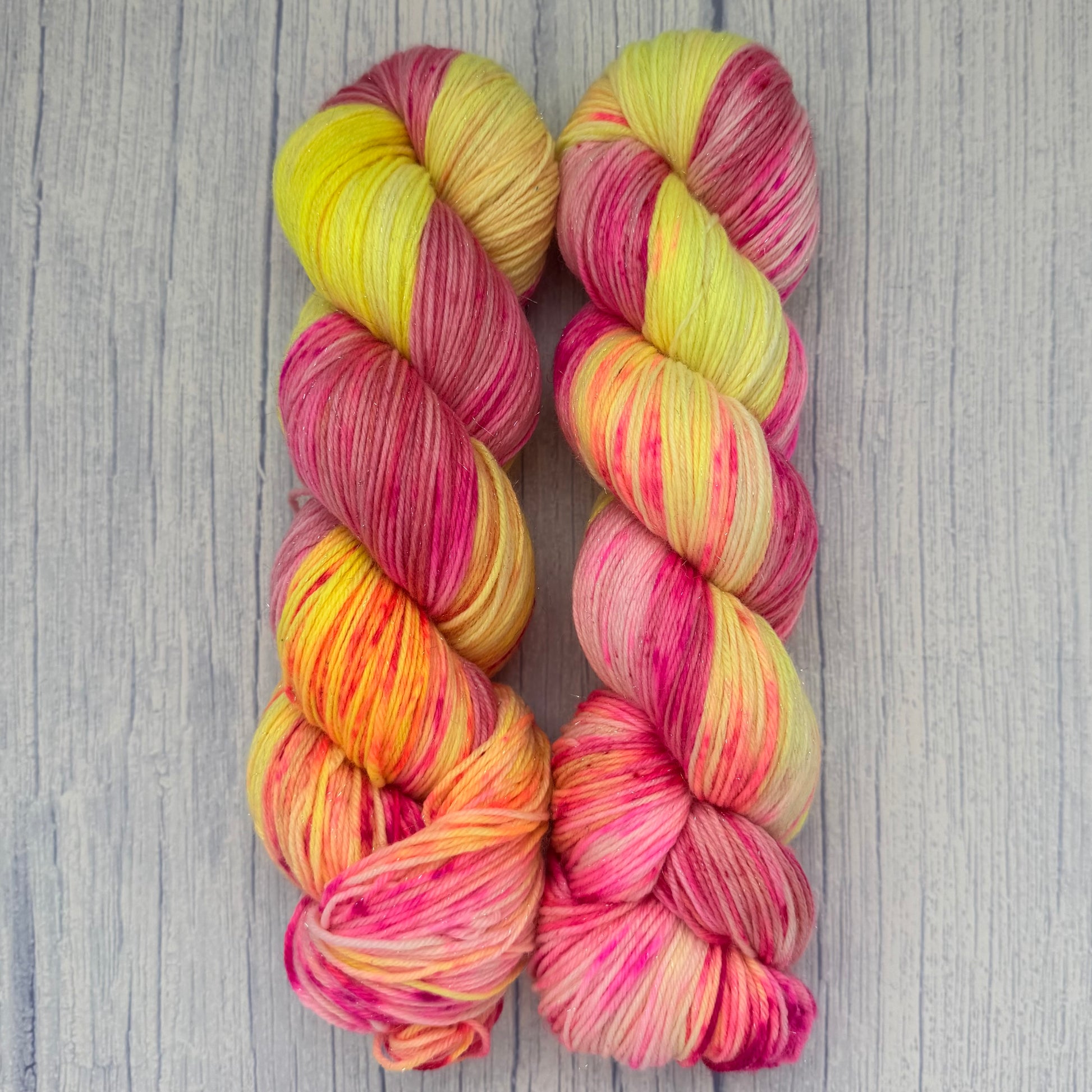 Dreamy DK ft. Neon Neps - DK Weight (3), 85% Fine Superwash Merino, 15% Donegal Neon Tweed Nep 4-ply, 232 yds/100g