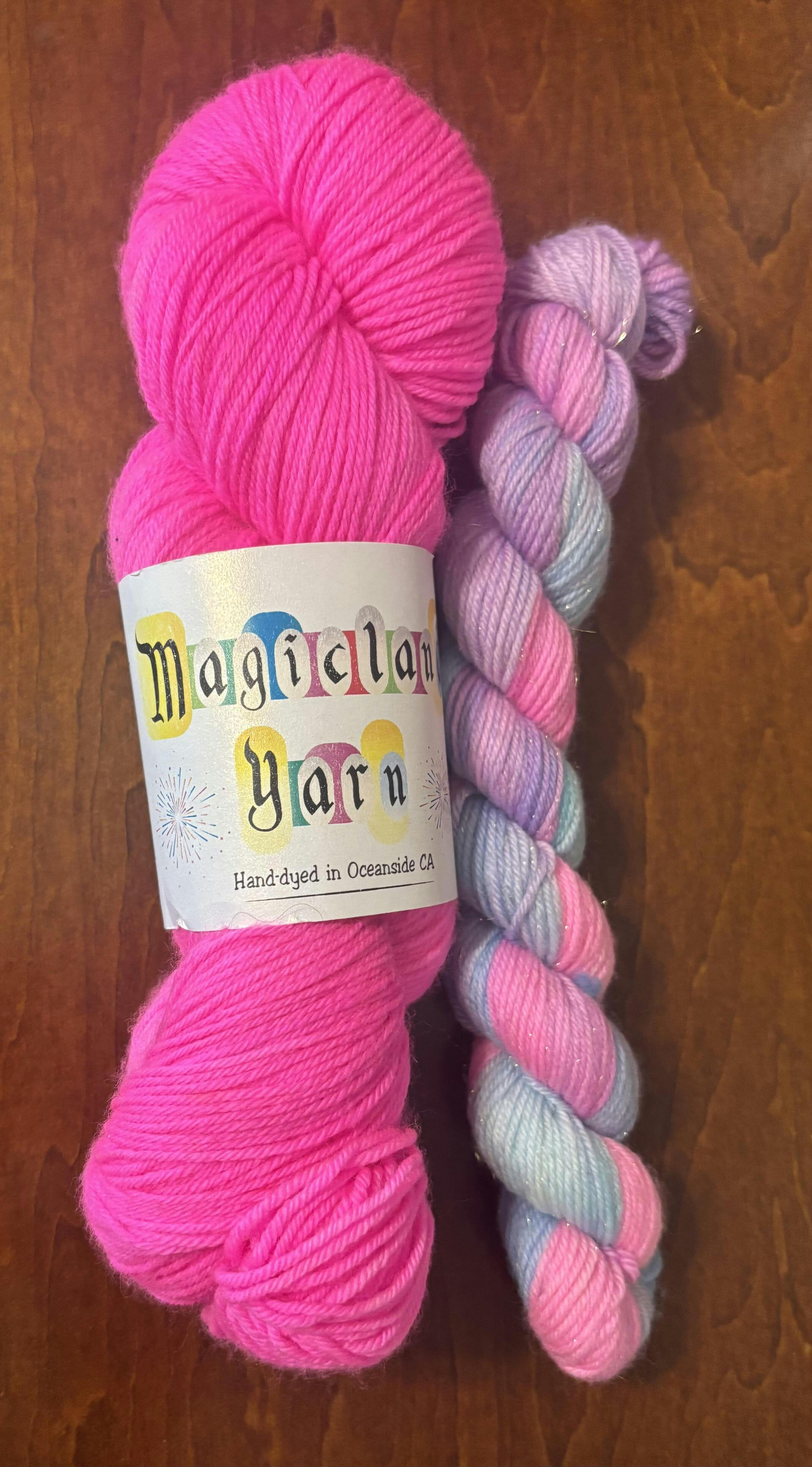 I’m super impressed with this yarn! It is so squishy and soft! And the Colors! Dark Ride is an amazing black with some variegation that I just know will knit up beautifully! And Tired Princess is a gorgeous hot pink, one of my favorite colors! I’m super excited to start my next project with them!