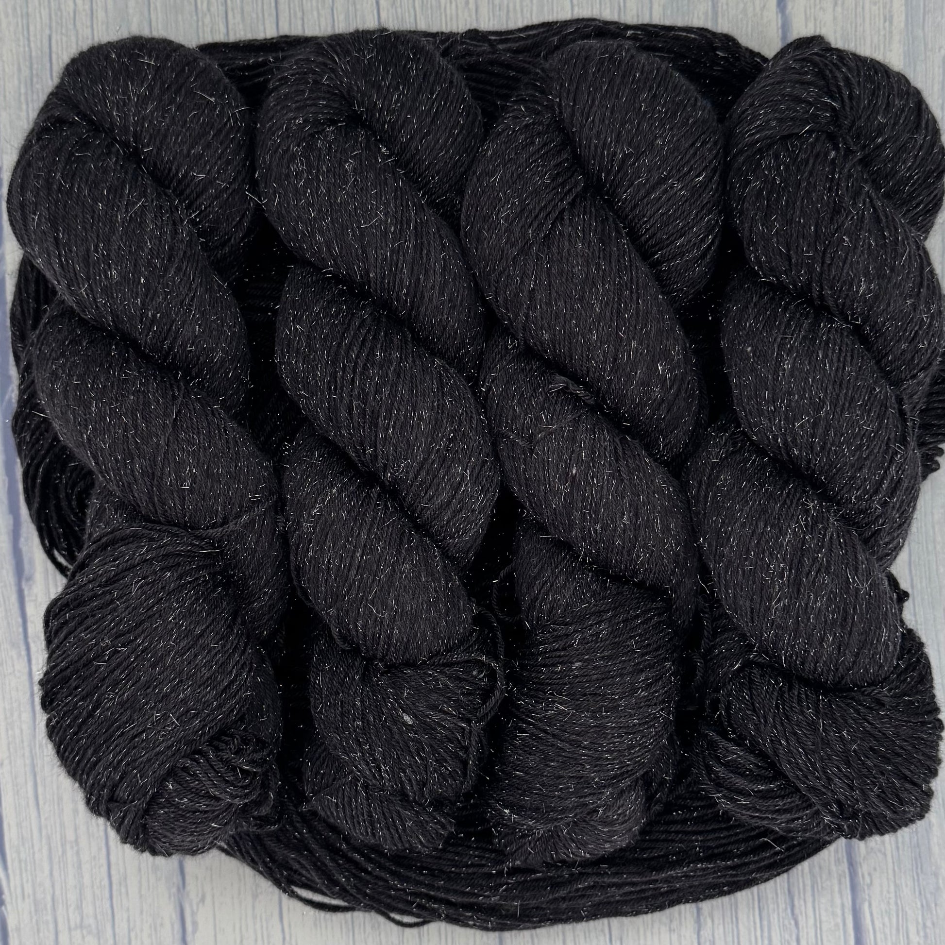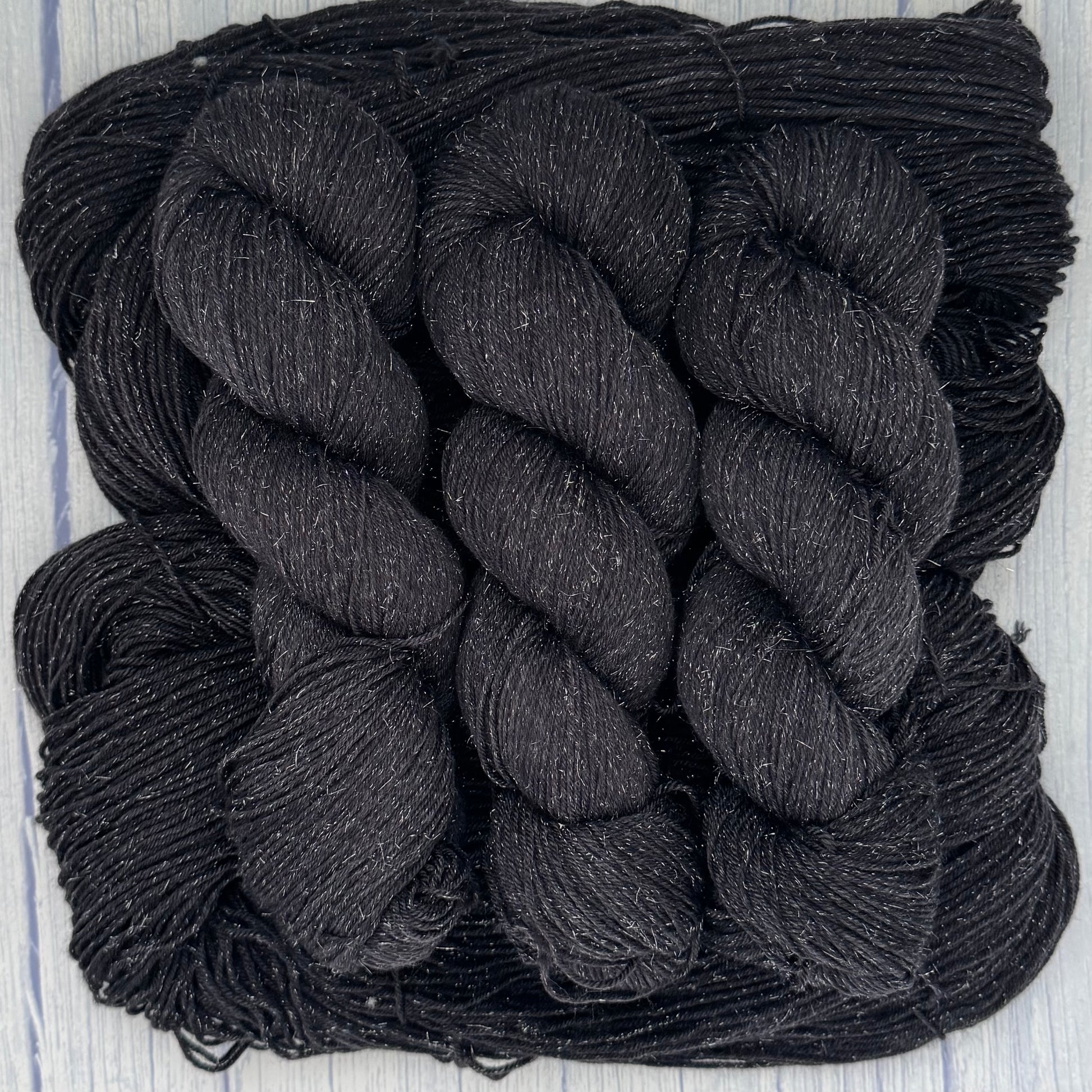 Pixie Dust (silver) DK - 75% Superwash Extrafine 15% Nylon 10% Silver Stellina Yarn (19.5 Microns), 246 yds/100g